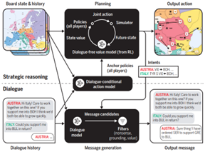 | [r] | M. F. A. R. D. T. (FAIR), A. Bakhtin, N. Brown et e. al, « Human-level play in the game of Diplomacy by combining language models with strategic reasoning » ; Science, vol. 378, n° %16624, pp. 1067-1074, 2022. |
