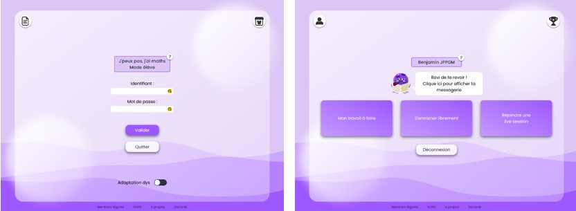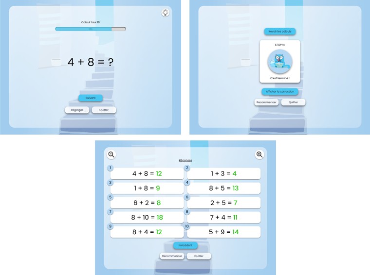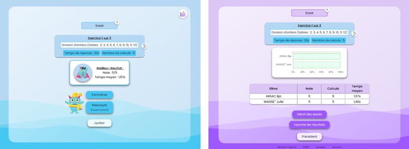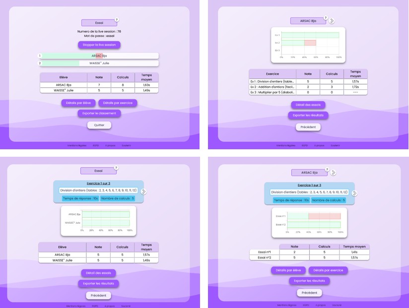 - la création d’une interface professeur pour créer des comptes élève, concevoir des séries d’exercices