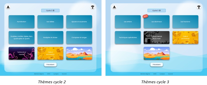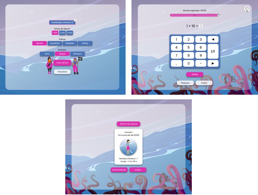 Les exercices se multiplient donc et, en mars 2023, le « tentacalcul mental » fait son apparition (équivalent du calcul mental de la mort pour le cycle2) avec 4 thèmes : ajouter, soustraire, multiplier et diviser.