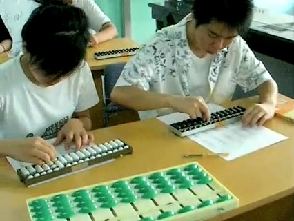 Calculs au boulier par un élève chinois lors de mon stage à Pékin