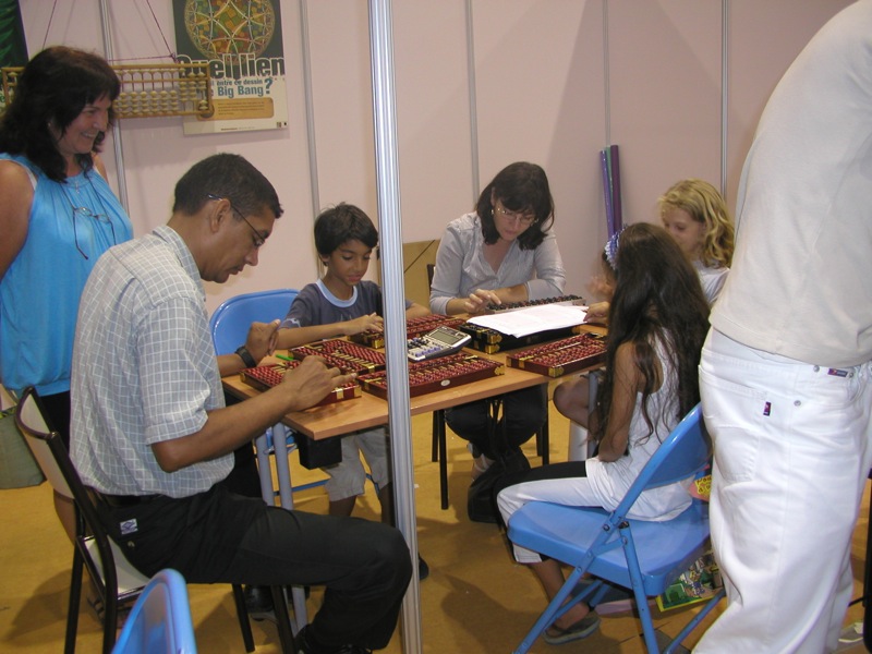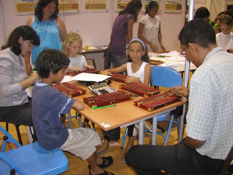 Un atelier de calcul sur boulier chinois s’était tenu sur le stand de l’IREM de la Réunion pour la Fête de la Science, en novembre 2010.