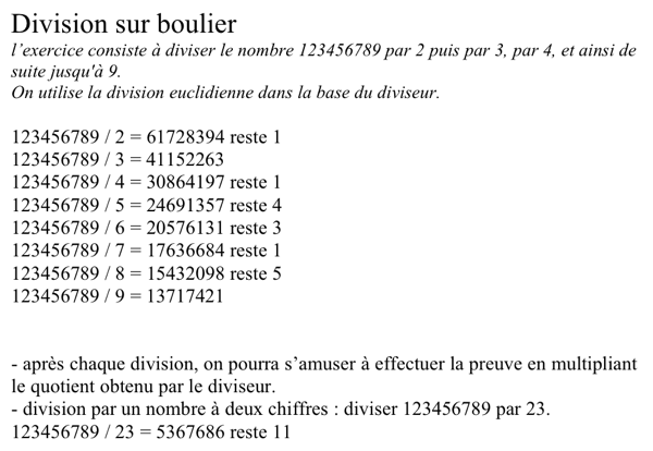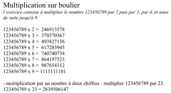 – Des exercices d’entraînement sur boulier sont proposés en images ici.