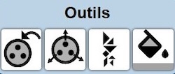 L’utilisateur dispose des mêmes mouvements et outils que précédemment, à quelques différences près. Il n’y a plus l’outil « pot de peinture » pour mettre les figures en couleur, et comme vous pouvez le voir sur la figure 14, il y a un outil supplémentaire (représenté par quatre flèches), celui-ci permet de déplacer le plan. Il permet de bouger l’ensemble de l’écran sans déplacer les figures.