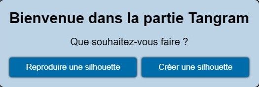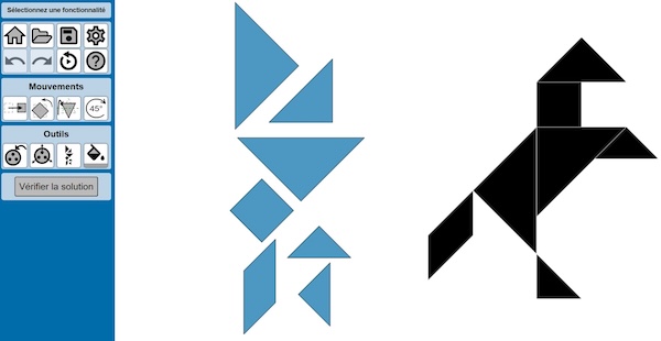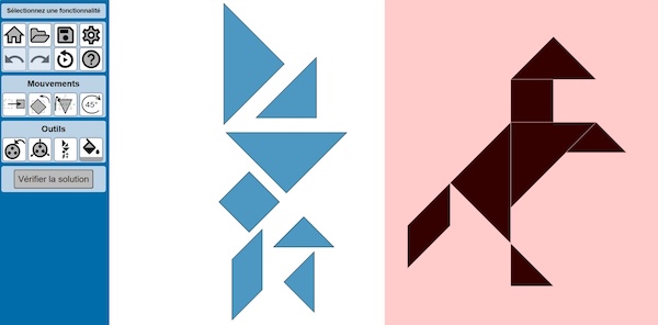 Le troisième permet de remettre les pièces à leur place initiale en cliquant simplement sur la figure. Le dernier permet de mettre en couleur les pièces du Tangram.