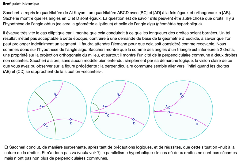 Complément : depuis ce lointain article de 2006, l’auteur a développé un site sur les GNE (Géométries Non Euclidiennes) dont voici une présentation dans MathemaTICE
