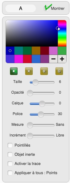 Si on sélectionne une liste graphique par l’inspecteur d’objets, on peut jouer sur deux paramètres : la taille des points et l’épaisseur des segments.