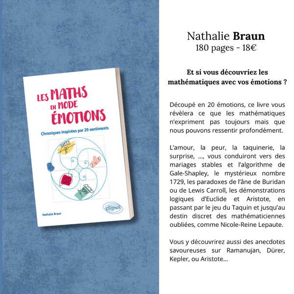 Ce titre fait écho à la thèse (que Nathalie Braun soutiendra le 13 novembre) dans laquelle une partie explore la place des émotions dans l’apprentissage en mathématiques.